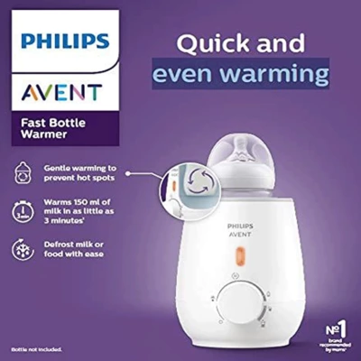 Les jours où vous avez les mains pleines : le chauffe-biberon Philips AVENT réchauffe votre lait rapidement et uniformément en seulement 3 minutes. En plus d’être simple à utiliser, il dispose d’une fonction de décongélation intégrée pratique et peut également être utilisé pour réchauffer les aliments de bébé.