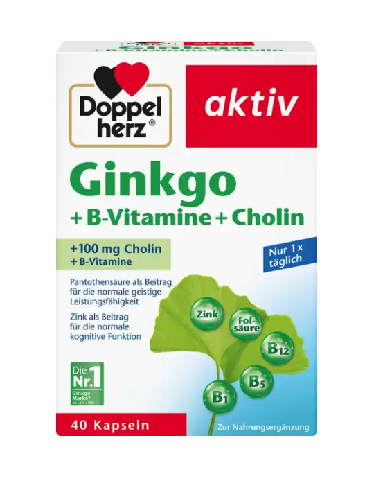 Les capsules Doppelherz contiennent des vitamines B et un oligo-élément zinc. Il contient également 100 mg de poudre de feuilles de ginkgo et 100 mg de choline.