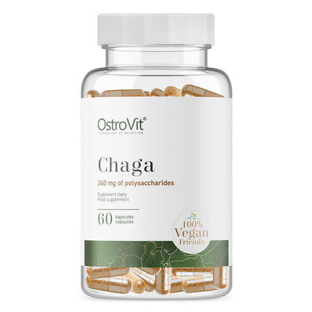 OstroVit Chaga VEGE est un complément alimentaire pour champignons qui est une riche source de nombreuses substances dont votre corps a besoin au quotidien. Le chaga contient des vitamines, des minéraux, des enzymes et des polysaccharides, grâce auxquels il améliore le fonctionnement de votre corps. Le chaga est également connu pour ses propriétés de remise en forme et d’amélioration de la performance.