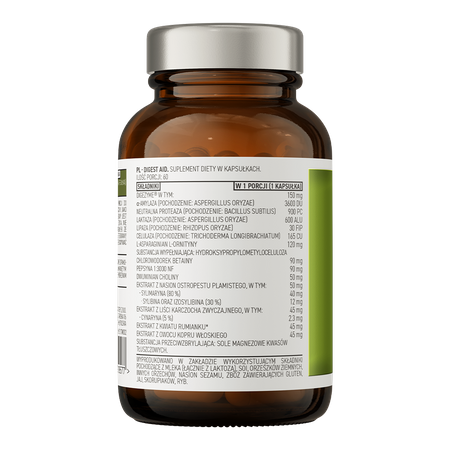 OstroVit Pharma Digest Aid est un complément alimentaire de haute qualité qui constitue une source complète d’ingrédients précieux, notamment le complexe multienzymatique DigeZyme®. Il s’agit d’une préparation de la gamme d’élite OstroVit Pharma, disponible sous forme de capsules faciles à avaler. C’est un produit conçu pour les personnes qui souhaitent compléter leur alimentation quotidienne avec des composés précieux.