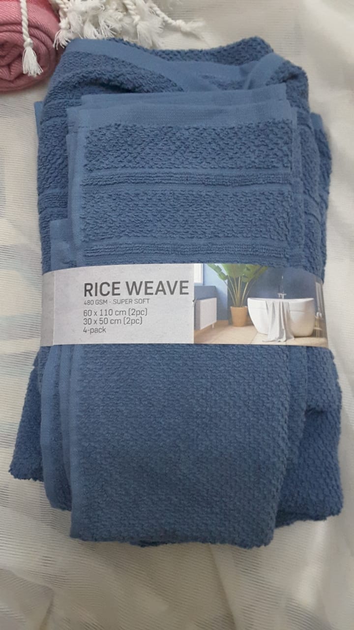 Rice Weave 4 serviettes de salle de bain coton