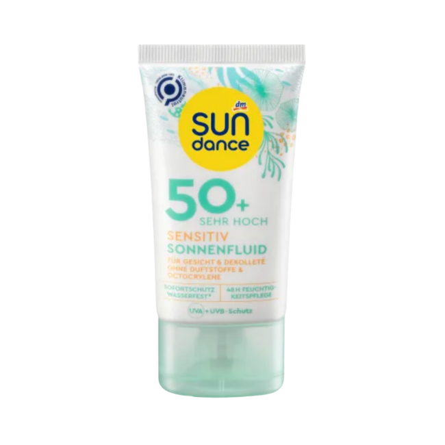 Pour les peaux délicates et sensibles : Le fluide solaire vegan SUNDANCE visage, sensible, SPF 50+ est waterproof* (*l’institut de test indépendant confirme : après être resté dans l’eau pendant 40 minutes, au moins 50% du facteur de protection solaire annoncé est toujours là ). et conforme à la Hawaii Reef Law** (**Hors filtres UV Octinoxate et Oxybenzone). Recette sans microplastiques et polymères hydrosolubles purement synthétiques.